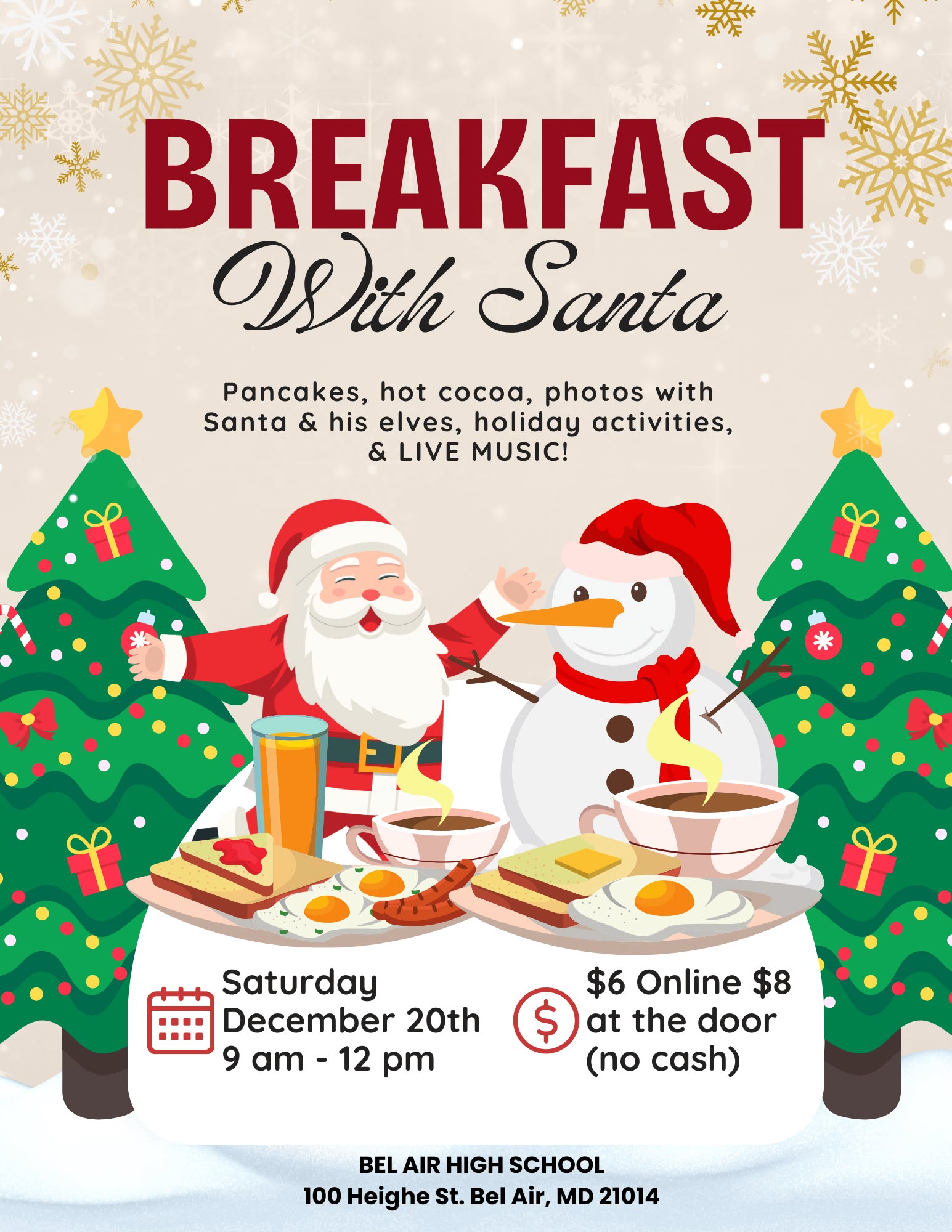 Come enjoy Bel Air Drama Company’s annual Breakfast with Santa! Expect Pancakes, hot cocoa, photos with Santa & his elves, holiday activities, & LIVE MUSIC!